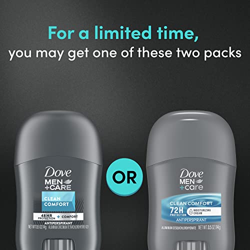 Introducing DOVE MEN + CARE Antiperspirant Deodorant Stick, the ultimate solution for men’s sweat and odor protection. This powerful antiperspirant provides 72-hour sweat and odor protection, so you can stay dry and fresh all day long. The Clean Comfort scent offers a refreshing and clean fragrance that will keep you feeling confident throughout the day. With 1/4 moisturizing cream, this antiperspirant also nourishes and protects your skin, leaving it feeling smooth and hydrated. The compact 0.5 oz size is perfect for on-the-go convenience, and the packaging may vary for a unique touch. Trust DOVE MEN + CARE for all-day freshness and comfort.,